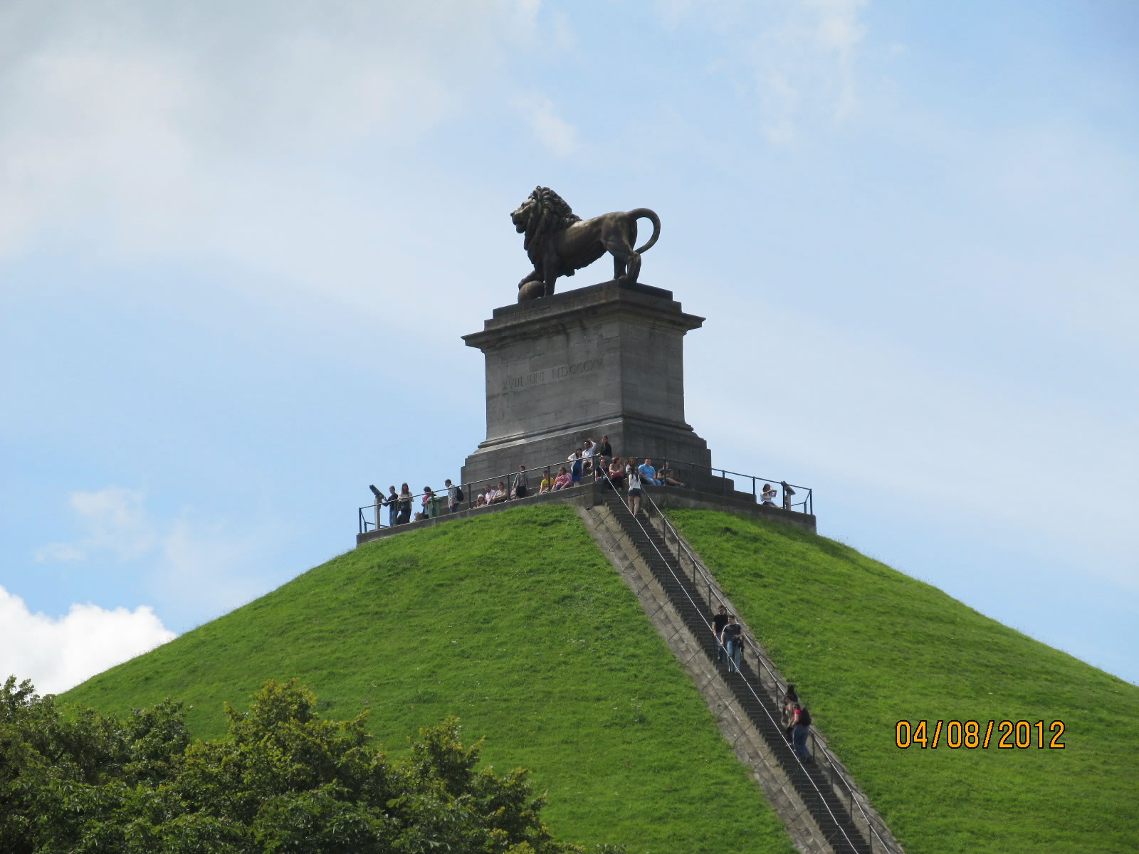 Bãi chiến trường xưa, nơi làm tiêu tan sự nghiệp của Napoleon, nay là một ngọn đồi nhân tạo hình tháp được đắp bằng đất lấy ở đúng bãi chiến. Trên đỉnh đồi là tượng một con sư tử. Khi tôi tới nắng chói chang. Du khách đua nhau leo lên đỉnh đồi. Đứng dưới chân đồi chụp hình, tôi thấy người người leo tít trên cao. Chỉ nội nhìn không đã thấy mệt. Vậy nên tôi chẳng có dịp đứng bên cạnh chú sư tử dũng mãnh. Ít khi có mặt tôi trong những chuyện đổ mồ hôi như vậy!