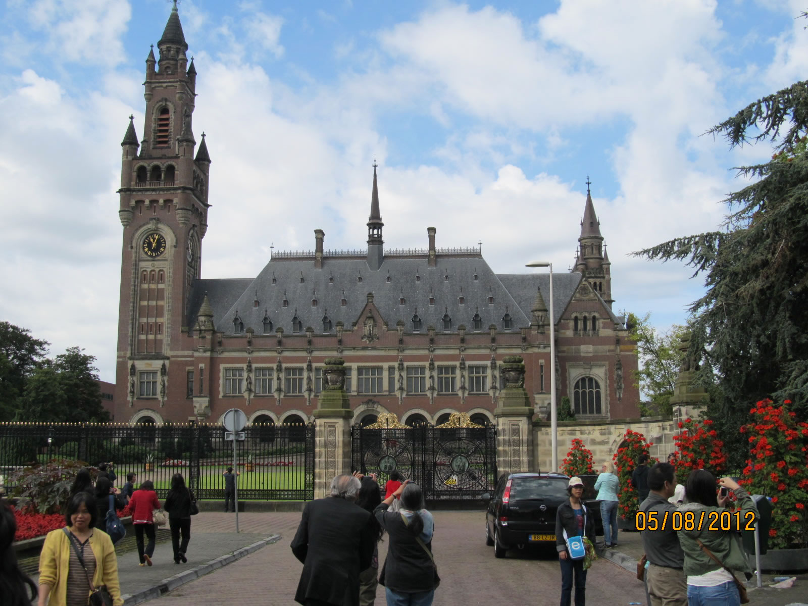 Từ Amsterdam đi The Hague khoảng 50 cây số, dư sức đạp xe tới. Nhưng tôi không phải là dân Amsterdam nên đành cỡi xe ca có máy lạnh đàng hoàng. Cho ra vẻ du khách! Nói The Hague theo tiếng Anh hay La Haye theo tiếng Pháp để chỉ thành phố mà dân Hoà Lan gọi là Den Haag, không biết có gợi cho các bạn điều gì chăng. Đó là nơi đặt trụ sở Tòa Án Quốc Tế, một cơ quan của Liên Hiệp Quốc, có nhiệm vụ xét xử các tranh tụng pháp lý do các quốc gia đệ trình và cho ý kiến về các vấn đề pháp lý do các tổ chức, cơ quan quốc tế hoặc do Đại Hội Đồng Liên Hiệp Quốc đệ nạp. Đây là một thứ tòa loại xịn chỉ chơi với các tranh tụng của các chính phủ và các cơ quan quốc tế nên rất ế khách. Thành lập từ năm 1945, sau Thế chiến thứ hai, Tòa Án Quốc tế rất nhàn nhã. Nhưng kể từ thập niên 1980, số vụ kiện tụng tăng hẳn lên với các vụ kiện của các quốc gia đang phát triển đệ nạp.