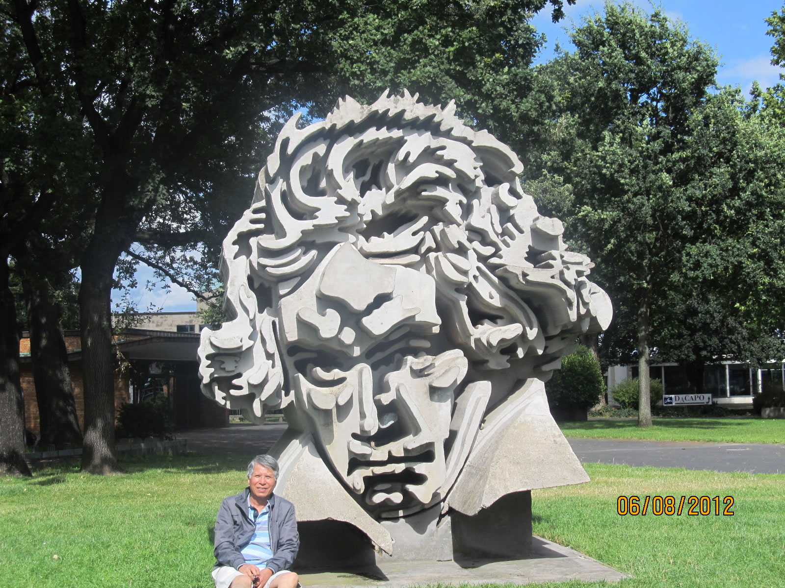 Bonn còn hãnh diện là quê hương của thiên tài âm nhạc Ludwig van Beethoven. Ông sanh ra tại đây vào năm 1770 và mất tại Vienna, nước Áo, vào năm 1827. Nơi sanh ra của ông tại khu trung tâm của Bonn nay trở thành “Viện Bảo Tàng Beethoven”. Ngay từ năm 1845, nhân kỷ niệm 75 ngày sanh của người nhạc sĩ tài ba của âm nhạc cổ điển Tây phương, một bức tượng của ông đã được khánh thành. Kể là muộn đối với nơi sanh quán của ông vì trước đó ba năm, năm 1842, thành phố Salzburg ở Áo đã dựng tượng của ông rồi. Tại Vienna, nơi ông mất, mãi tới năm 1880 mới có tượng tưởng niệm. Tôi không được tới coi ngôi nhà thơ ấu của Beethoven vì không được dắt tới nhưng tôi đã tới nơi có bức tượng của Beethoven tân kỳ hơn nơi công viên của đại hí viện Bonn. Tượng chân dung này chỉ có khuôn mặt của nhà nhạc sĩ nằm sát trên cỏ được ghép bằng những tảng xi măng nằm ngổn ngang mà nếu đứng từ xa trông không ra hình thù chi. Nhưng nếu đứng ngay chính giữa nhìn thẳng vào thì những tảng xi măng lộn xộn này tạo thành khuôn mặt Beethoven rất có hồn.