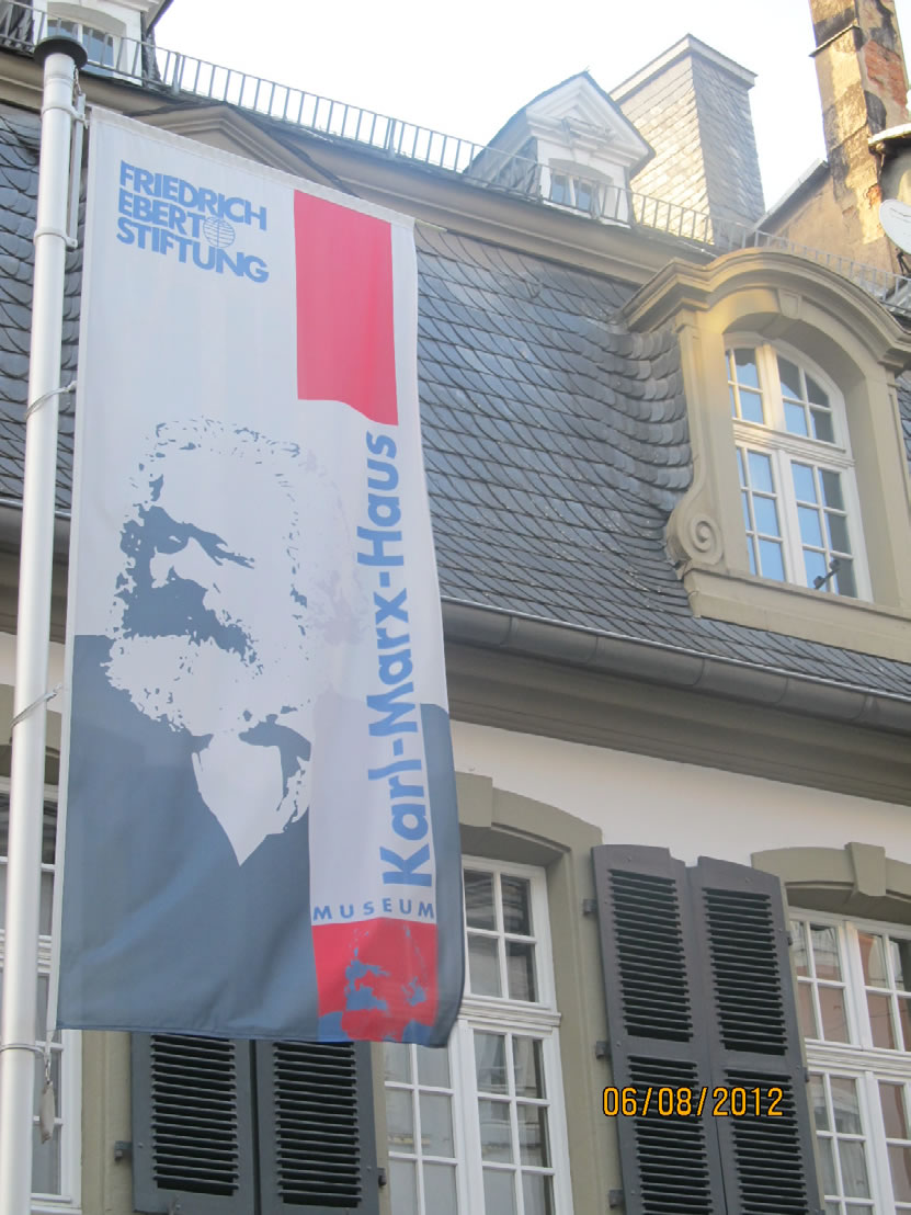 Trong danh sách các cựu sinh viên trường Đại học Bonn có các khuôn mặt mà sau này hầu như đi vào những con đường triết học đối nghịch nhau. Có đương kim Giáo Hoàng nhưng lại có Karl Marx vô thần. Karl Marx không có...hộ khẩu tại Bonn. Sanh quán của ông là Trier. Đây là thành phố cổ nhất của Đức, được thành lập từ năm16 trước công nguyên, nằm cách Luxemburg có 50 cây số. Nơi sanh của Karl Marx là một ngôi nhà trông rất tầm thường nằm trên đường Bruckenstrasse. Ngôi nhà hầu như lẫn lộn với những ngôi nhà khác dắt díu nhau đứng sát sạt trên vỉa hè. Không hàng rào, không vườn trước. Người ta ghi dấu nơi đây bằng một tấm phướn trắng in hinh chân dung và hàng chữ “Karl Marx Haus Museum”. Gắn trên tường là một tấm bảng nhỏ, cũng có hình chân dung và câu tiếng Đức: In Diesem Hause wurde am 5 Mai 1818 Karl Marx gebohren (Nơi căn nhà này Karl Marx được sanh ra vào ngày 5 tháng 5 năm 1818). Ngôi nhà nay được làm bảo tàng viện Karl Marx. Một nhóm du khách tụ tập trước cửa tuy đã hết giờ mở cửa. Giả thử còn trong giờ mở cửa, tôi cũng không vào. Báu gì mà phải bỏ tiền vào coi! Một người Việt trong nhóm cùng đi hỏi tôi: “Sao mình lại tới đây vậy ông?”.