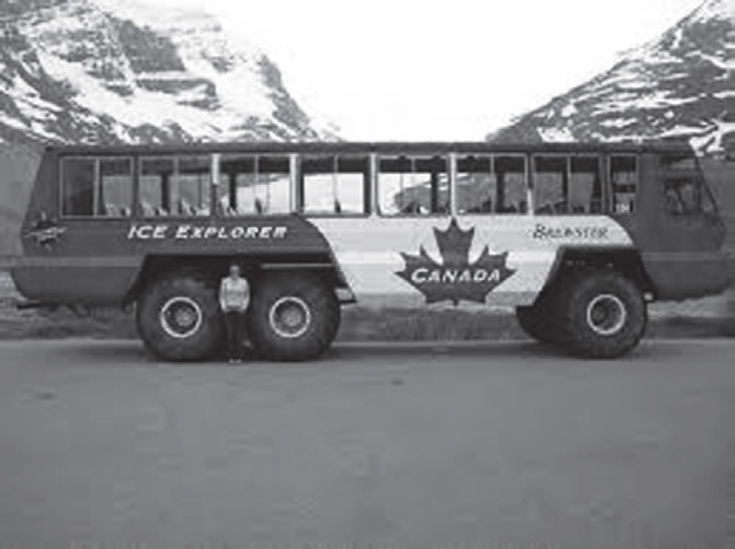 Món ăn chơi thứ ba là Glacier Adventure. Đúng là…adventure. Món này là những chiếc xe lớn như xe buýt, chứa được khoảng năm chục người. Nói là xe buýt nghe có vẻ hiền lành nhưng đây đúng là xe…tăng. Thân xe dày dặn như những chiếc hummer khổng lồ. Dàn bánh xe mới kinh hoàng: đường kính chắc phải tới trên thước rưỡi. Tôi thấy một người đứng chụp hình với bánh xe, người và bánh cao ngang nhau! Du khách được xếp vào ngồi trong xe, không có thắt lưng an toàn. Ông tài xế đội mũ sắt mở máy xe nghe ầm ầm như tiếng thác đổ. Xe leo lên núi. Có những chỗ dốc đứng làm đứng tim hành khách. Ì ạch một hồi, xe tới một bãi tuyết trắng xóa. Tuyết thì chúng tôi chẳng lạ chi. Montreal có khối! Nhưng tuyết giữa nắng hè đổ lửa quả là chuyện lạ. Xe ngừng lại cho du khách xuống chơi tuyết. Ông tài xế dục mọi người lấy chai nước uống hứng nước tuyết tan ra từ trên đỉnh cao hơn chảy xuống. Nước tuyết tan có chi mà ham. Tôi đứng nhìn đoàn người xếp hàng lấy nước…thánh với cặp mắt ngạo mạn. Nghĩ lại, thấy mình chỉ biết mình. Đám du khách này có thể đến từ những vùng chẳng bao giờ có một vẩy tuyết thì chỉ nội việc được nhìn thấy tuyết cũng là một thú vị để đời, huống chi lại được nếm nước tuyết!