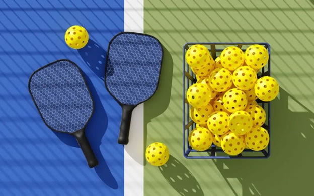 Banh pickleball được làm bằng nhựa, có các lỗ nhỏ để giảm bớt độ ma sát khi di chuyển trên không, đường kính từ 7,3 phân đến 7,8 phân, nặng từ 22 gram đến 26 gram. Có hai loại banh: banh dùng ngoài trời có ít lỗ hơn để chịu được sức gió, banh đánh trong nhà có nhiều lỗ hơn để di chuyển chậm và ổn định hơn.