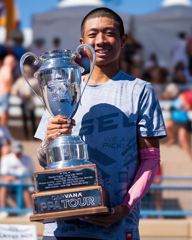 Từ khi có các tổ chức như Hiệp Hội Pickleball Hoa Kỳ USAPA và Liên Đoàn Quốc Tế Pickleball IFP các giải thi đấu đã được tổ chức quy mô. Từ ngày 9 đến 13/10/ 2024 vừa qua, tại Las Vegas đã có giải Las Vegas Pickleball Tournament 2024, quy tụ 32 đấu thủ hàng đầu thế giới. Trong số này có một người Việt Nam là em Quang Dương, tên đầy đủ là Dương Thiên Quang, 18 tuổi, cha và mẹ đều là dân Việt chính cống. Ngay từ nhỏ , Quang Dương đã say mê chơi tennis và bóng bàn. Năm 2020, em coi một trận pickleball chuyên nghiệp trên truyền hình và kết với môn này ngay. Em say mê chơi và bộc lộ năng khiếu, giành nhiều giải thiếu niên, chơi giỏi tới mức được gọi là “thần đồng” pickleball. Em đã đứng hạng 7 thế giới trong bảng xếp hạng của PPA Tour. Trong giải Las Vegas Pickleball Tournament 2024, em đã vượt tất cả các đối thủ sừng sỏ nhất thế giới để lên ngôi vô địch.