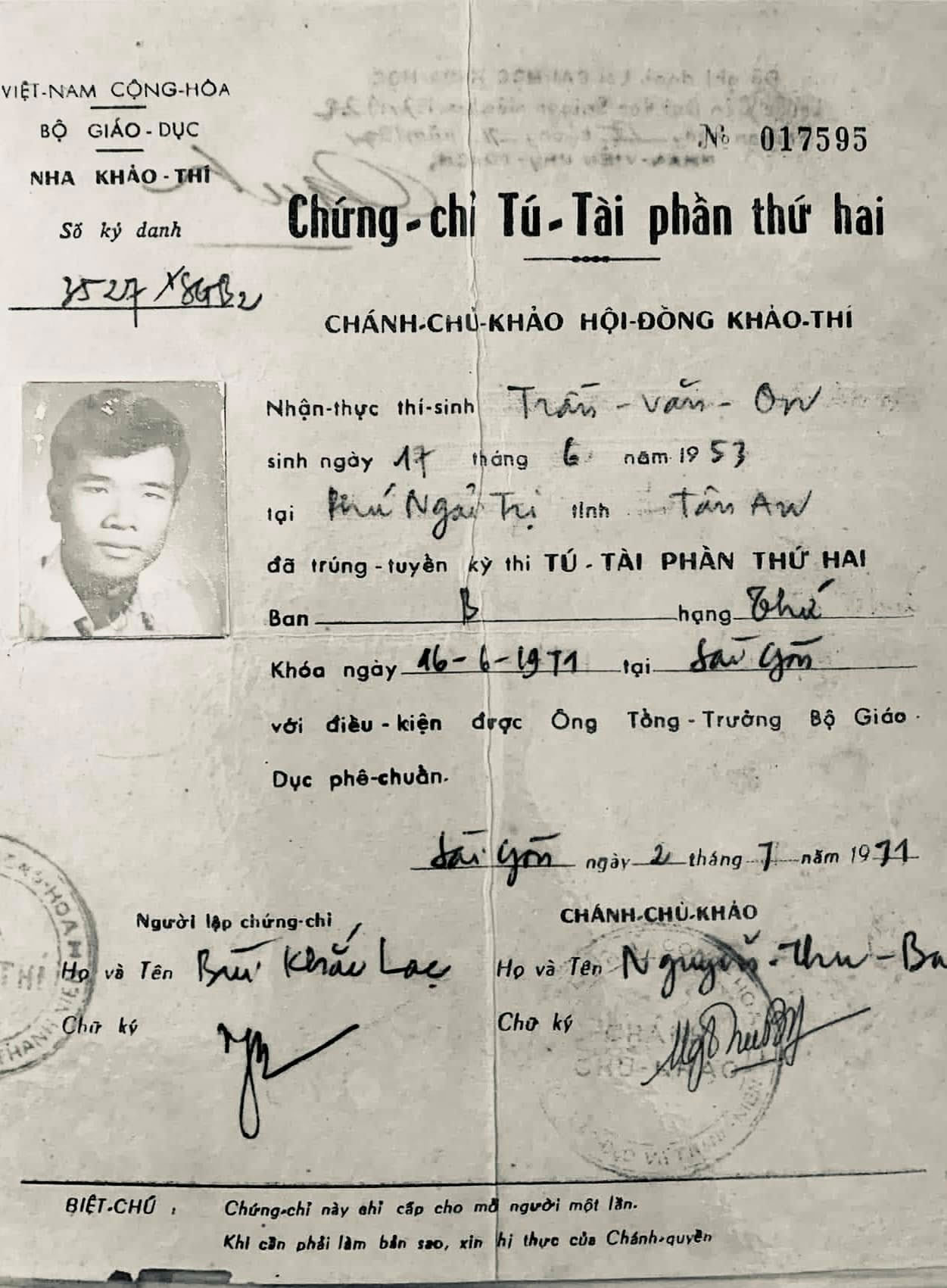 Được xướng tên chưa chắc đã thành Tú Tài vì còn kỳ thi vấn đáp. Thi vấn đáp tựa như ra tòa án. Trực tiếp đối diện với các phán quan mặt sắt đen xì. Theo tôi nhớ thì trong các kỳ thi vấn đáp ngày đó tôi không bao giờ gặp một nữ giáo sư. Nếu được đối diện với mặt hoa da phấn chắc sẽ dễ chịu hơn. Phần lớn các giám khảo hỏi vấn đáp đều làm theo lương tâm nghề nghiệp, cho rút thăm câu hỏi, dành 10 phút cho thí sinh sửa soạn trước khi mặt đối mặt trả lời. Nhưng cũng có những trường hợp ngoại lệ. Tôi đã kể đâu đó vài trường hợp mà chính tôi và chú em tôi gặp, nay chỉ nhắc lại qua loa. Hung thần của môn vấn đáp Pháp văn hồi đó là Giáo sư Võ văn Lúa, có vợ đầm. Gặp ông phần lớn là…lúa đời! Vậy mà tôi gặp ông. Khi tôi đang ngồi sửa soạn câu đáp, bỗng nghe thấy ông đập bàn rầm rầm quát anh bạn đang thi: “Nếu anh là con trai tôi, tôi sẽ tát cho anh một cái!”. Tôi ngồi run như cầy sấy. Tới lượt, tôi lên bảng trả lời khá trôi chảy, ông cám ơn, tôi liếc cây viết trên tay ông, thấy ông ghi số điểm 13/20. Nhưng chuyện sau đó mới vui. Một anh bạn cùng lớp không qua khỏi kỳ thi viết, chưa bao giờ vào vấn đáp, bỏ học ngang nhưng thành công trong cuộc sống với nghề phóng viên nhiếp ảnh chiến trường cho các hãng thông tấn Mỹ, sau này mời tôi đi ăn cưới anh. Cô dâu bữa đó chính là con gái thầy Lúa! Chú em tôi bị một ông Thầy dạy Pháp văn đì khi theo học ông trong lớp Đệ Nhị tại trường Chu văn An. Khi ông thấy tên chú được vào vấn đáp, ông cất công đi tìm phòng thi của chú. Khi thấy chú ngồi, ông ngang nhiên vào rỉ tai ông thầy đang hỏi vấn đáp. Và ông này đã đánh rớt. Sau này cả ông thầy đánh rớt và chú em tôi bị nhốt chung trong tù cải tạo của cộng sản. Hai người chung một đội. Khi chú em tôi được thả, tôi hỏi có nhắc lại chuyện xưa không, chú lắc đầu. Khi đó cùng chung cảnh tù tội, làm khổ thêm nhau làm chi. Hai ông này hồi đó đều là giáo sư trẻ khá nghênh ngang. Họ coi trời bằng vung bỏ quên lương tâm nhà giáo. Năm thi Tú Tài II, tôi gặp một ông giáo sư cũng cùng băng trẻ nhưng dạy Anh văn. Năm đó ông hỏi vấn đáp 13 thí sinh. Tôi trả lời câu hỏi theo những gì được học trong chương trình lớp Đệ Nhất C. Ông dè bỉu cho đó chỉ là những kiến thức căn bản, ông muốn câu trả lời sâu hơn. Chương trình học không dậy, lấy đâu kiến thức sâu hơn. Ông tặng tôi con số 3 điểm, điểm loại. Năm đó tôi rớt vấn đáp. Không chỉ tôi dẵm vỏ chuối, tất cả 13 thí sinh gặp ông đều nhận số điểm loại 3/20. Khóa thi thứ hai năm đó, ông bị cấm chấm thi. Sau này, khi Hội Cựu Học Sinh Chu Văn An tại Montreal tổ chức họp mặt, có quầy sách mà các Giáo sư và cựu học sinh là tác giả, ông có vài cuốn sách dịch và ngồi ký sách cạnh tôi. Dĩ nhiên ông không nhận ra tôi nhưng tôi sao quên được ông. Tôi cũng chẳng nhắc chuyện xưa làm chi. Cùng tha hương, vui chi mà làm buồn lòng nhau.